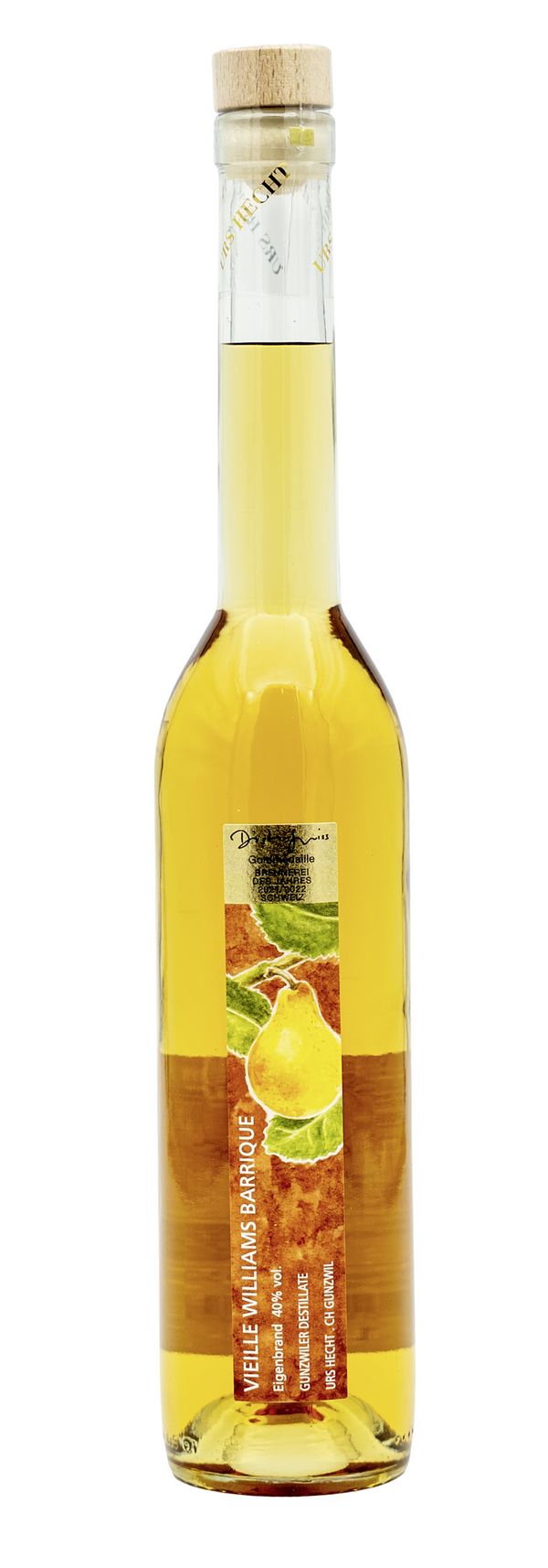 Optimal gereifte Williamsbirnen sind die Basis für diesen aussergewöhnlichen Brand! Er reift so lange in der Barrique aus Schweizer Eiche, bis Frucht und Eichenholz in perfekter Harmonie verschmelzen. Ein Prozess, der zwei bis sieben Jahre in Anspruch nimmt. Von der DistiSuisse-Jury mit 91 Punkte bewertet: blitzsauber, aromatisch, harmonisch, perfekt eingebundenes Holz.