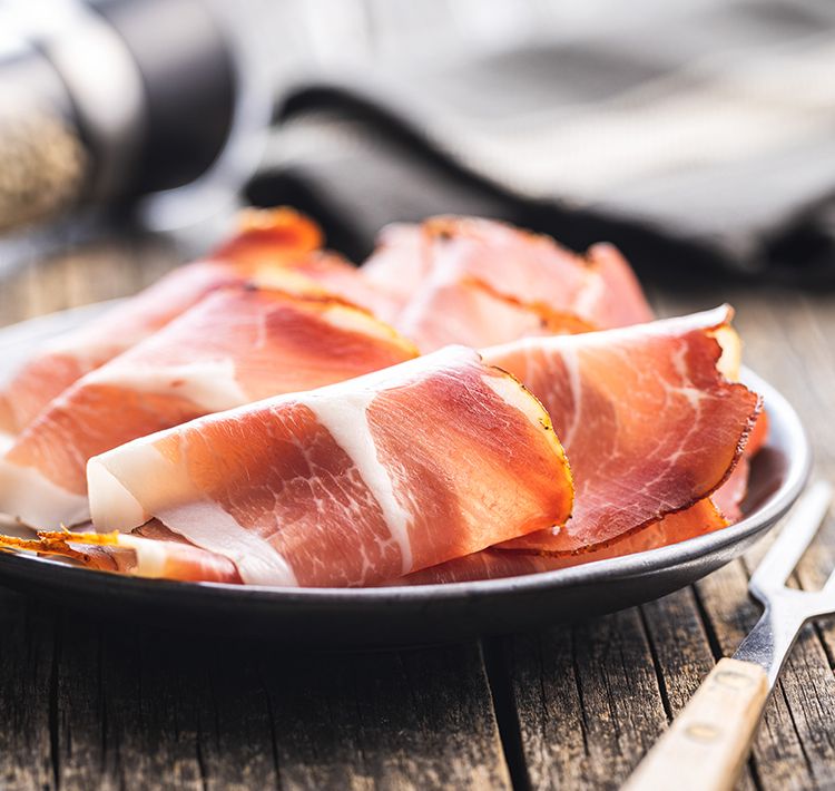 Zum luftgetrockneten Schinken serviert Benjamin Herzog…