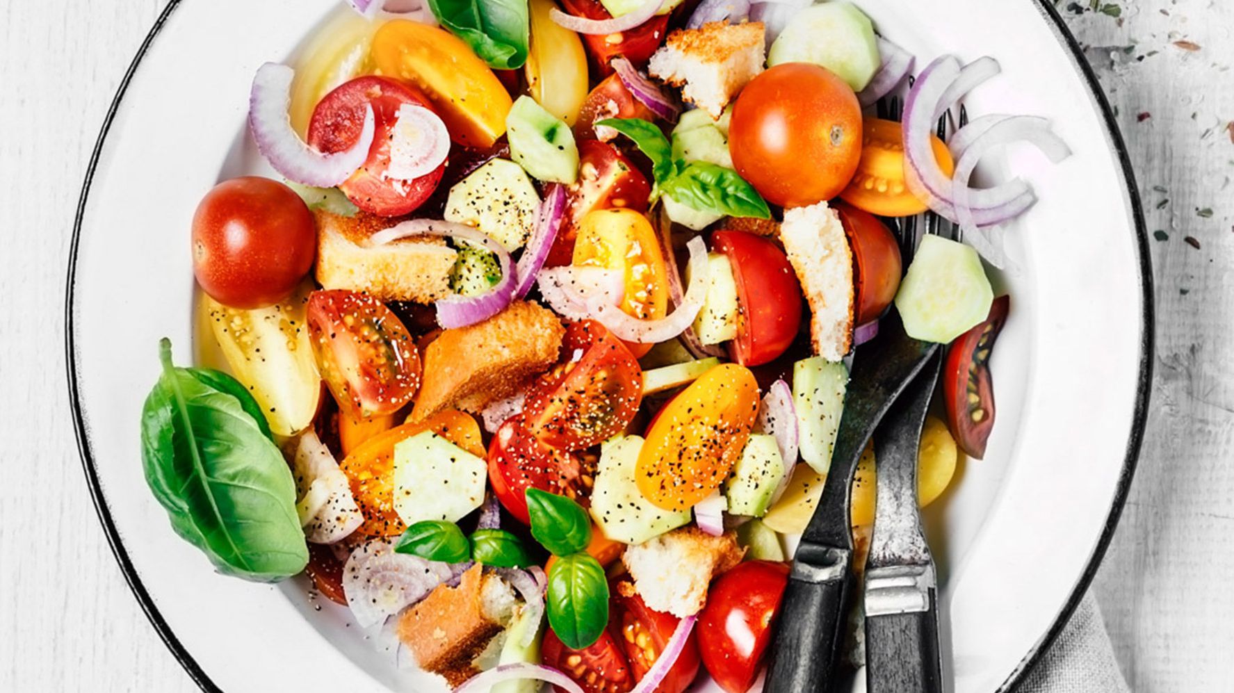 Wohl der weltweit bekannteste Salat der italienischen Küche ist der toskanische Brotsalat Panzanella. Schnell vorbereitet, sollte er dann nur noch ein wenig ziehen, damit sich die Aromen verbinden können.