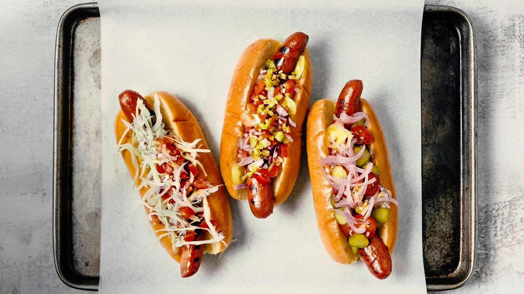 Der Begriff «Fast Food» wird vielen kreativen Hot Dogs gar nicht mehr gerecht. Ursprünglich war es ein einfaches, weiches Brötchen, länglich und etwas kürzer als eine Brühwurst oder ein Frankfurter Würstchen, das hineingelegt wurde. Etwas Ketchup, Senf und vielleicht zwei Scheiben Essiggurke — fertig. Einer Legende nach soll die Wurst ins Brötchen gekommen sein, als einem Wursthändler in St. Louis (USA) die Papierhandschuhe ausgingen und er als Ersatz die Wurst ins Brötchen steckte, damit sich seine Kunden nicht die Finger verbrannten. Der Name «Hot Dog» ist vermutlich den Hunden der aus Deutschland ausgewanderten Metzger in den USA geschuldet: Dackel, die in ihrer Statur einer Wurst ähneln. Heute finden sich vielerlei verschiedene Versionen. In Dänemark ist die Wurst rot, Rød Pølse, in Chile heisst der Hot Dog «Completo», ist doppelt so gross und üppig belegt. (nh)