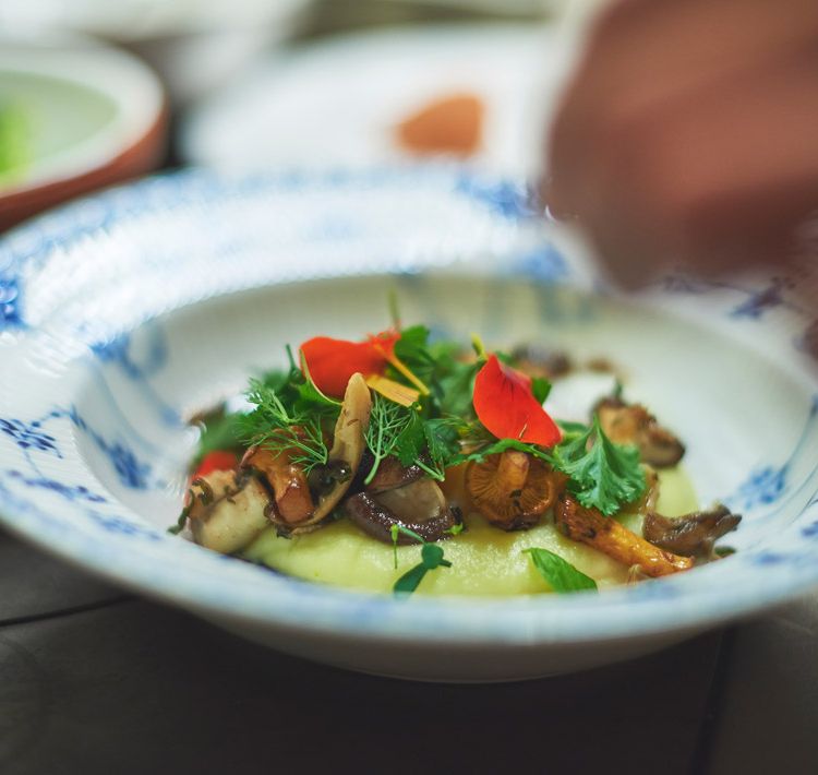 Kartoffelpüree | pochiertes Ei | Pilzragout mit Kräutern