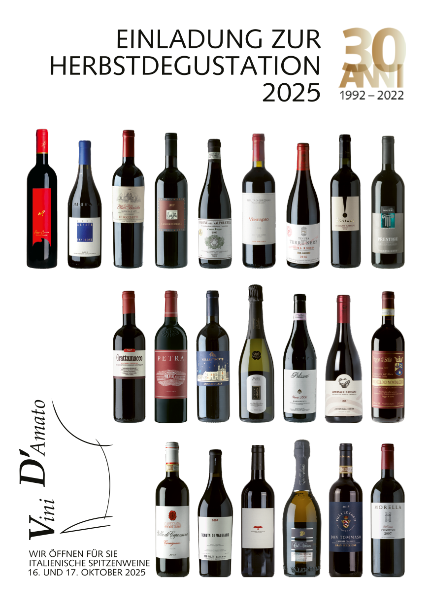Wir freuen uns, Sie zur Herbstdegustation der Vini D'Amato AG einladen zu dürfen, dem traditionellen Treffpunkt, um die neuen Jahrgänge zu degustieren und sich mit den anwesenden Produzenten zu unterhalten. In diesem Herbst sind wir wieder in der "Mägd" in Basel, wo wir über 150 Weine für Sie öffnen.