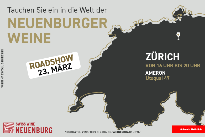 Die Neuenburger Winzer werden Ihnen ihre Weine bei exklusiven Weinproben in 5 Städten der Deutschschweiz vorstellen. Jeder Winzer wird Ihnen bis zu 6 Weine aus seinem Sortiment anbieten, darunter auch den berühmten Neuchâtel Non Filtré!