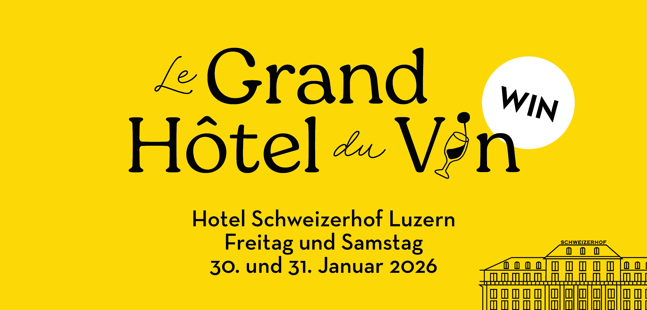 Am 30. und 31. Januar 2026 verwandelt sich der Schweizerhof Luzern erneut in ein Pop-Up-Weinhotel. In 15 Hotelzimmern präsentieren Schweizer Winzerinnen und Winzer ihre Weine persönlich und laden zu einer genussvollen Entdeckungsreise ein. Zwei Themenräume, ein Sensorium sowie Mini-Chocolate-Wine-Pairings mit Max Chocolatier sorgen für zusätzliche Genussmomente. Im Ticket enthalten sind das erste Glas Wein, ein informatives Leaflet und eine Goodie Bag für Zuhause.