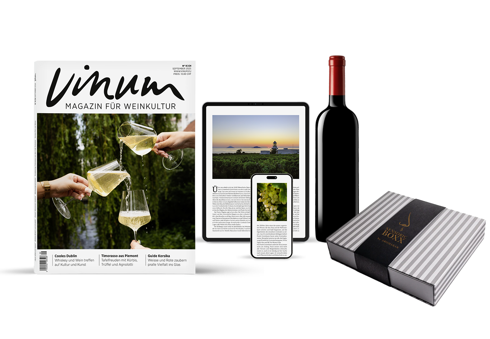 Gönnen Sie sich diesen Winter ein besonderes Genusserlebnis: Beim Abschluss eines VINUM Jahresabos erhalten Sie eine AROMABAR Sensorik-Box (12er-Set) mit Rotwein- oder Weissweinaromen, sowie einer Flasche Wein als Geschenk. Schärfen Sie Ihre Sinne, vertiefen Sie Ihr Weinwissen und geniessen Sie gemütliche Winterabende mit VINUM – dem führenden Magazin für Weinliebhaber. Ideal für alle, die ihre Sensorik verfeinern möchten.