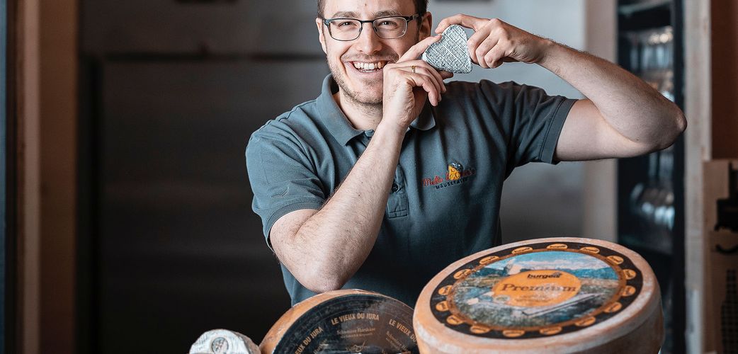 Aus Liebe zum Produkt. Käse spielt schon immer eine große Rolle in seinem Leben. «Jede Käsetheke war meine.» Jetzt hat er seine eigene. Seit 2017 verkauft er in der Markthalle Reutlingen seine liebsten Käse-Spezialitäten aus der ganzen Welt. Mit großem Erfolg – was auch an seinem begeisternden Wesen liegt.