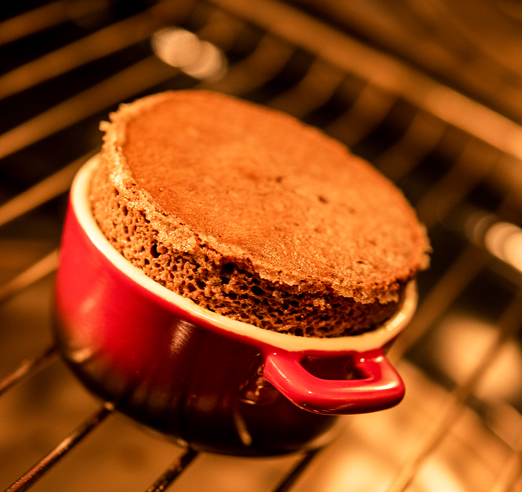 Eigelb und Zucker schaumig schlagen. Butter und Schokolade im Wasserbad schmelzen. Vermicelle- und Mandelmasse glattrühren und mit der Zucker-Eigelb-Masse vermischen. Die flüssige Schokolade mit Butter dazugeben und gut mischen. Die gemahlenen Mandeln beigeben und verrühren. Zum Schluss das steif geschlagene Eiweiss mit einer Prise Salz darunterheben. Portionsformen mit Butter auspinseln und mit Zucker ausstreuen. Mit Kuchenmasse füllen und bei 190 °C im Backofen circa 15 Min. backen.