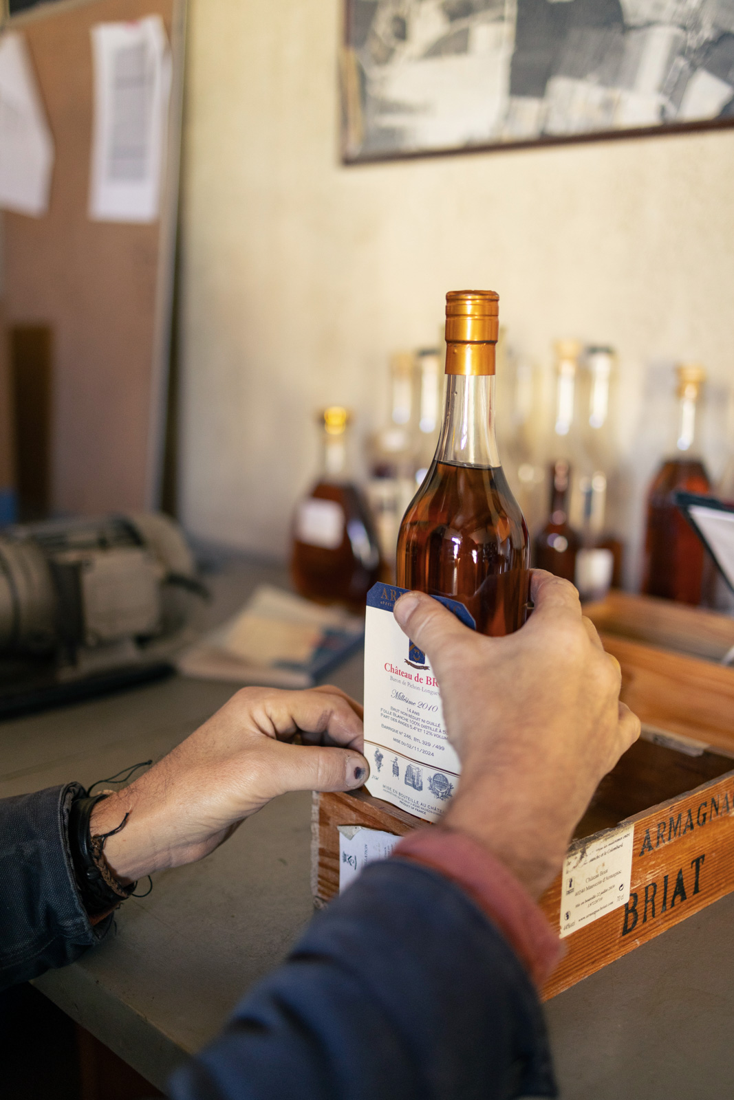 Die meisten seiner bisherigen Kunden befinden sich zudem in Russland, China und den USA – die weltpolitische Lage macht die Situation nicht einfacher. Im Unterschied zu Cognac ist Armagnac jedoch weniger vom Export abhängig und auch die Marken Château de Briat und Pichon Langueville hätten sich in Frankreich de Luze zufolge in den letzten Jahren besser verkauft. De Luze verfügt nicht über ein grosses Flaschenlager. Kommt eine Bestellung rein, füllt er mal 50, mal 200 Flaschen ab, wenn spontan ein Journalist aus der Schweiz vorbeischaut, auch mal nur eine einzelne Flasche.