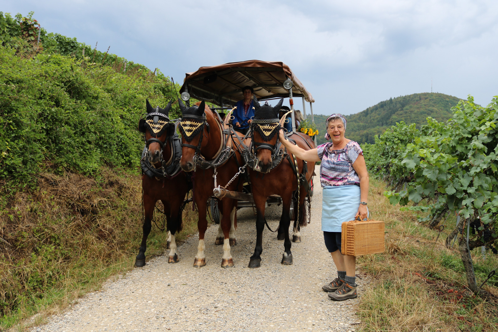 Gemütlicher und kurzweiliger kann man nicht durch die Reben fahren. Auf ihrem Pferdewagen erzählt Räbfraueli Elsie Zimmermann über sich und ihr Leben und was sonst noch niemand weiss. Ein unvergessliches Erlebnis!