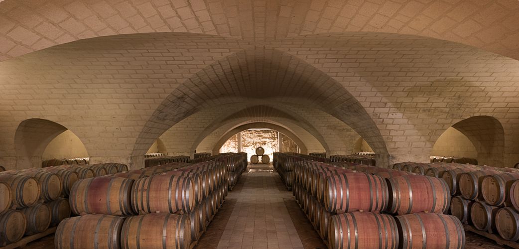 Der Fasskeller befindet sich tief im Inneren der Kellerei. Die Eichenfässer ruhen unter einer doppelten Gewölbedecke, die aus denselben Tuffsteinen wie das Gebäude selbst, errichtet wurde. Von der zweiten Etage aus hat man einen atemberaubenden Blick auf die Landschaft. Auf dem gegenüberliegenden Hügel liegt das Dorf Minervino mit seinen strahlend weißen Steinhäusern, die sich in der Sonne spiegeln, während im Westen der Vulkan Vulture über das Gebiet wacht.