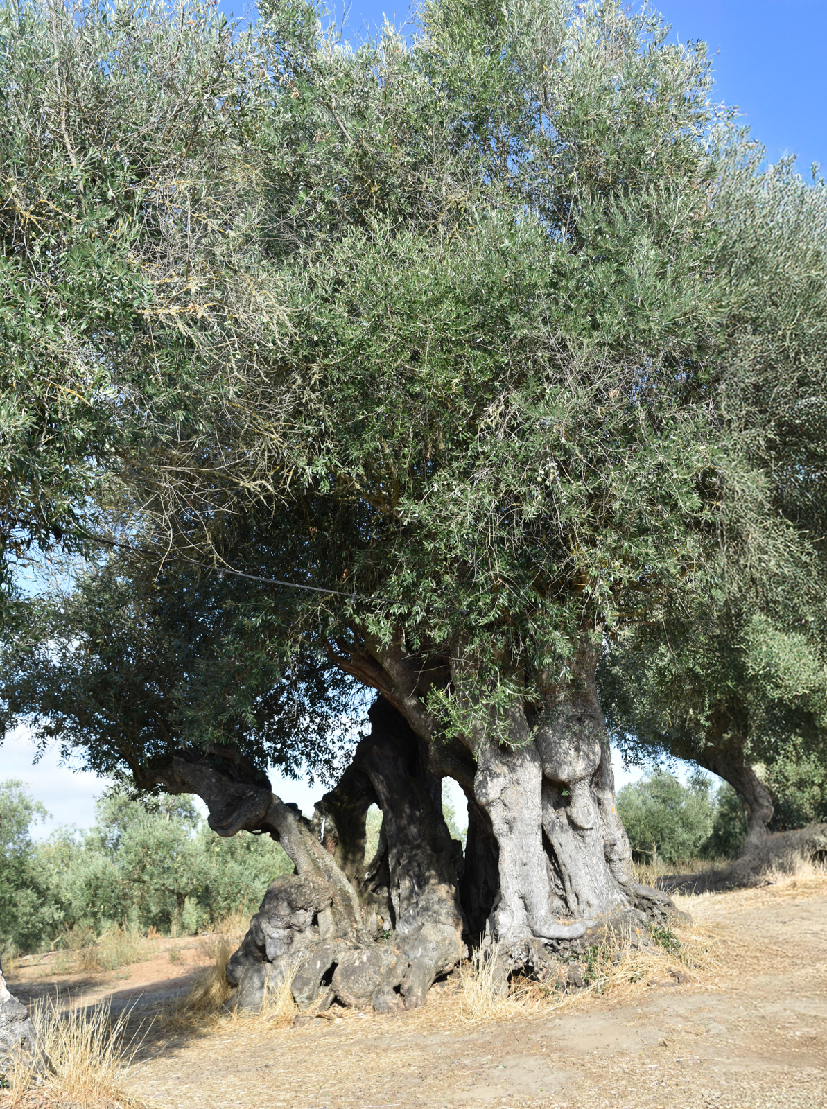Eine halbe Autostunde nördlich von Évora an der Strasse nach Vimeiro fehlt es ausser im Frühling an frischen Farben. Doch auf einmal leuchten die Hänge in lebendigem Grün: Herdade da Fonte Santa, Heimat von Mainova, auf Deutsch «Nesthäkchen». Damit ist Bárbara, die jüngste Tochter der Familie Monteiro, gemeint. Sie entschloss sich 2019, das Biogut mit seinen 20 Hektar Rebstöcken und 90 Hektar Olivenbäumen zu leiten und seine Produkte zu lancieren. Eine moderne Kellerei wurde errichtet, die Weine von Starwinzer António Maçanita konzipiert. Spannend. Was den Besuch einmalig macht, findet sich auf einem nahen Hügelrücken: ein weiter Kreis von uralten Olivenbäumen, nach dem Carbon-14-Test ist er der mit 2400 Jahren der älteste.