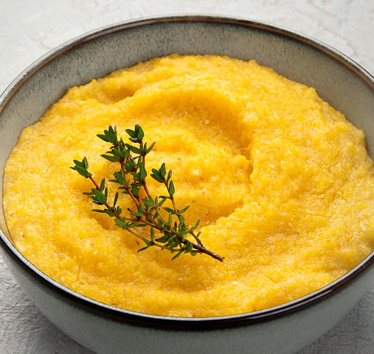 4. Mit «wei­cher» Polenta servieren, besonders fein aus der in Venetien heimischen, alten weissen Maissorte Biancoperla.