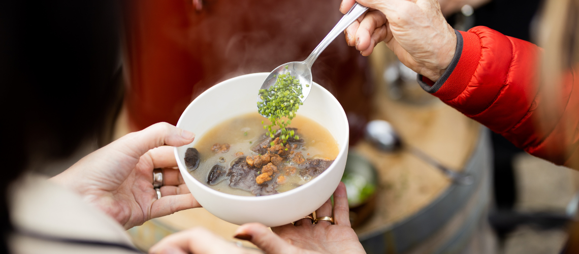 Hinter der Veranstaltung steckt die jahrhundertalte Tradition des Sautanzes. Am Genussgut Krispel wird dieses Brauchtum einmal im Jahr modern interpretiert und für Genießer:innen zugänglich gemacht. Im Fokus steht dabei die Wertschätzung des Tieres und der bewusste Umgang mit Lebensmitteln. Vom ersten bis zum letzten Stück wird alles vom hauseigenen Bio-Wollschwein verarbeitet und verkocht. Die Gäste dürfen sich auf ein herzhaftes Menü mit Nose-to-Tail-Spezialitäten freuen und sind herzlich eingeladen, sich an der Verarbeitung zu beteiligen und so nicht nur bleibende Geschmackseindrücke, sondern auch wertvolles Wissen mit nachhause zu nehmen. Küchenchef Daniel Weißer und Team verwöhnen unter anderem mit gerösteter Leber über Grammeln mit Trüffeln bis hin zum altbekannten Schnitzel und Schweinsbraten. Begleitet werden die Wollschwein-Gerichte von den gebietstypischen Krispel-Weinen sowie einer Auswahl an alkoholfreien Alternativen.