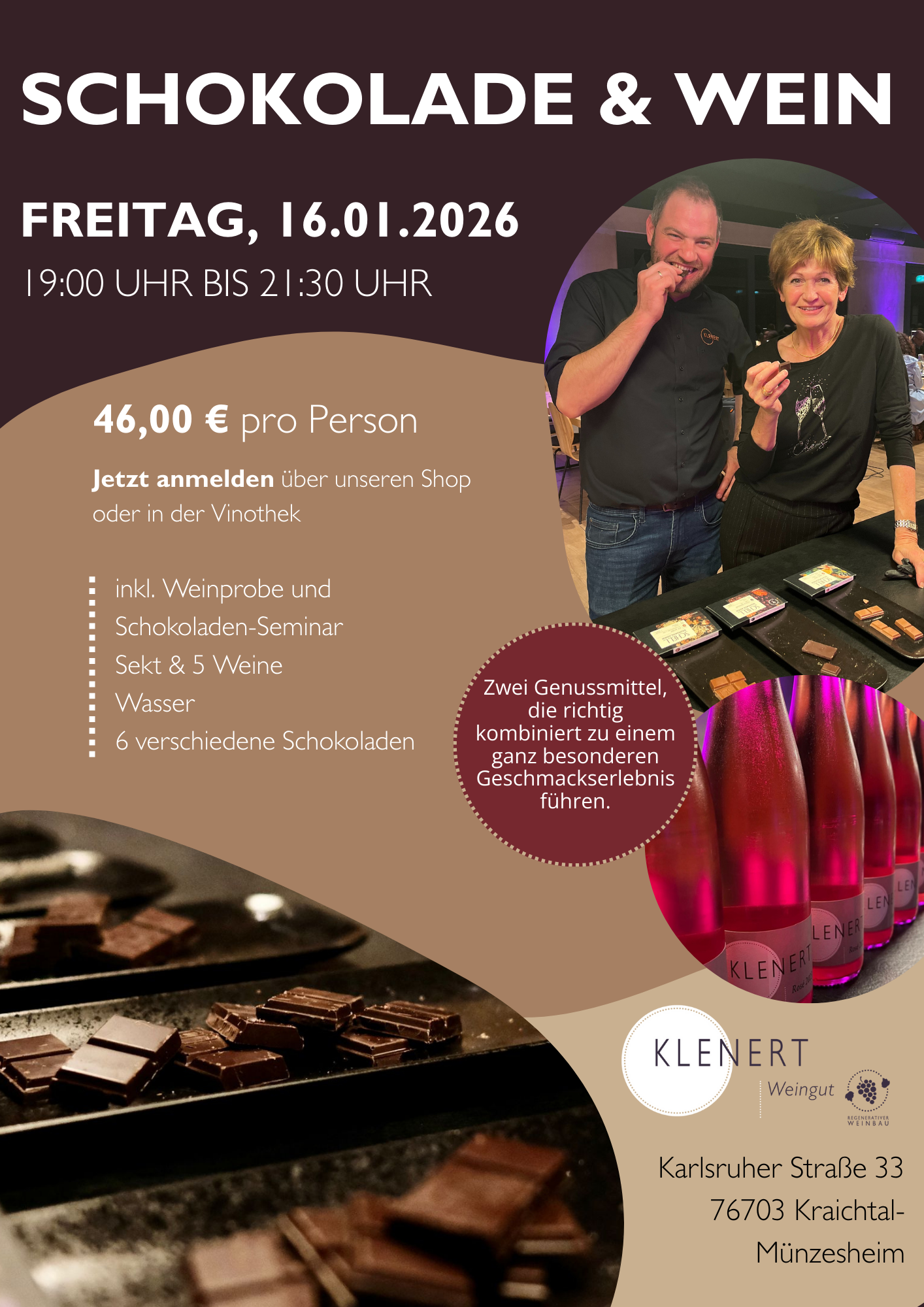 Genießt die verführerische Kombinationen der Schokoladenmanufaktur Schell und dem Weingut Klenert.