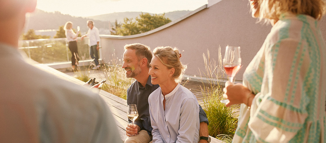 Ob mit Kollegen, Freunden oder solo zum Entspannen – unser gemütlicher Rebhof und die entspannte Atmosphäre laden zum Ankommen und Abschalten ein. Musik, Lichter, gute Gespräche und ein Glas Wein in der Hand: So schmeckt Feierabend.