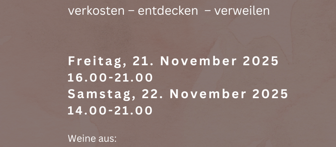 Wein ist Begegnung, Kultur und Genuss. Lass dich von fünf Ausstellenden auf eine Reise durch erlesene Weine aus Österreich, Spanien, Portugal, Griechenland und der Schweiz führen. Erlebe Vielfalt – und wie Wein Menschen miteinander verbindet.
