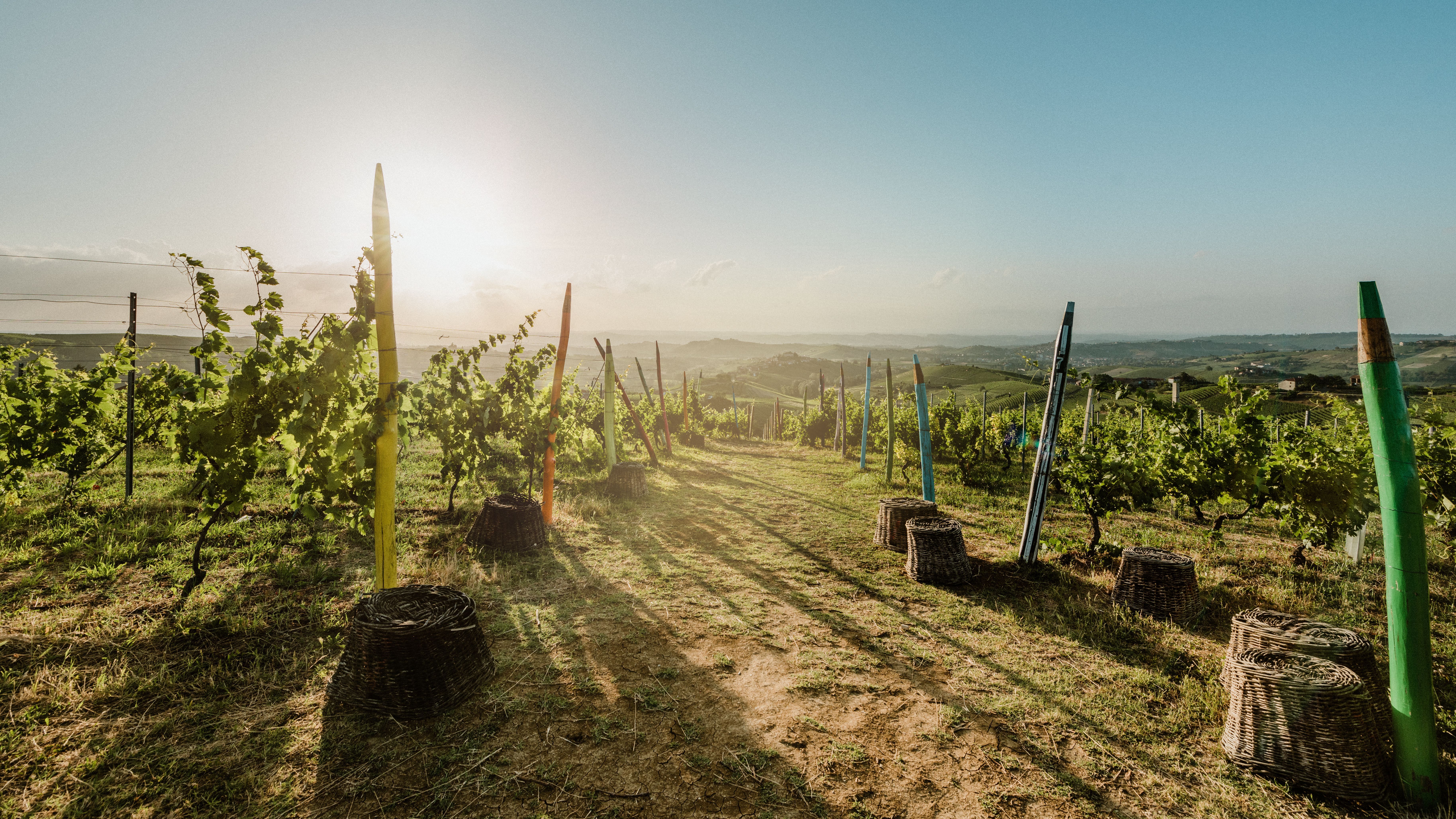 Die Moscato Bianco-Trauben aus den grosszügigen Hügeln im Herzen des Piemont bilden die Basis der beiden grossen DOCG-Weine Moscato d`Asti und Asti Spumante, finessenreichen Botschaftern einer Landschaft mit unvergesslichen Aromen und Farben. Der Moscato d´Asti DOCG ist ohne Zweifel eines der charakteristischsten Produkte des piemontesischen Weinbaus. Obwohl kein Schaumwein, ist er  leicht frizzante mit feiner Perlage und besitzt Süsse und eine Lebendigkeit, die ihn unverwechselbar macht. Die Weinbauern schätzten ihn einst zu einer deftigen Merenda, als Begleiter zu Brot, Butter und Sardellen. Heute hingegen entdeckt man immer wieder neue Facetten in Kombination mit exotischen Gerichten. 9700 Hektar in 51 Gemeinden der Provinzen von Alessandria, Asti und Cuneo sind mit Moscato Bianco bestockt. Mehr als 1400 ha haben ein Gefälle von über 40 Prozent, davon 330 ha gar über 50 Prozent. Das sind Rebberge mit der historischen Sorì-Bezeichnung, die nicht maschinell, sondern nur mit Hand bearbeitet werden können. Rund 4000 Betriebe sind an der Produktion von Moscato d´Asti DOCG und Asti Spumante DOCG beteiligt. Das Gebiet des Asti DOCG auch ist das erste Weinbaugebiet Italiens, das als Weltkulturerbe der UNESCO nominiert wurde.