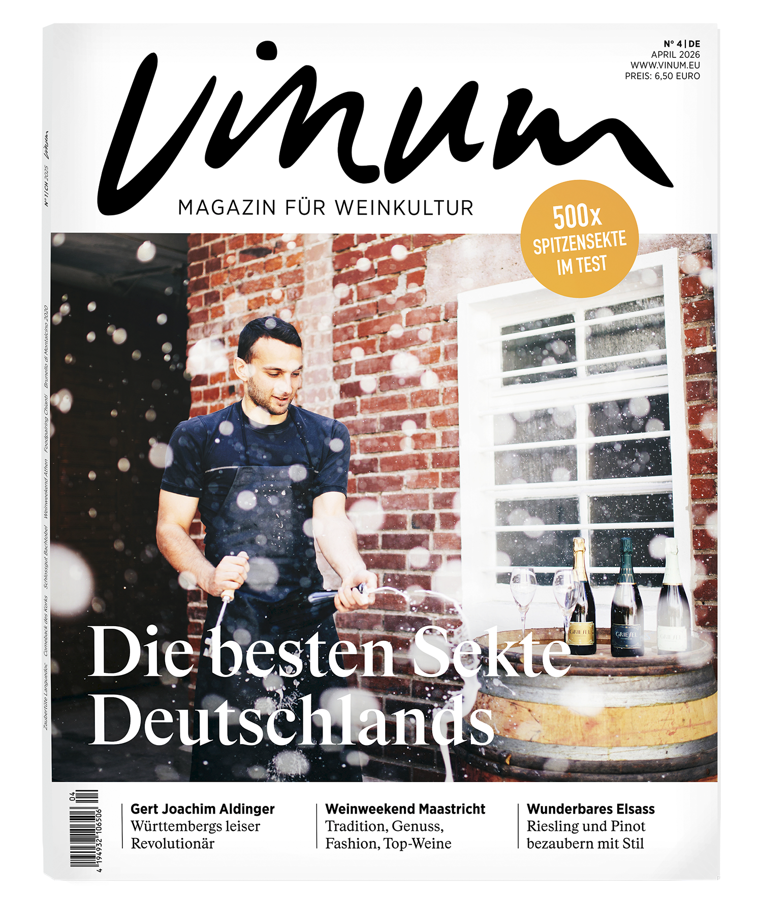 Einzelausgabe Aktuelle VINUM Ausgabe jetzt bestellen für 6,50 Euro (zzgl. 1,30 Euro Versandkosten) Bestellen Sie sich die aktuelle Ausgabe bequem zu Ihnen nach Hause und tauchen Sie ein, in die faszinierende Welt des Weins. (nur für Lieferungen innerhalb DE erhältlich) Bester Weinjournalismus | Unabhängige Bewertungen | Mitreissenden Reportagen | Fundiertes Wissen | Reisetipps & Foodpairings Freuen Sie sich auf:Spannenden WeinjournalismusUnabhängige BewertungenMitreissende ReportagenFundiertes WissenKöstliche FoodpairingsInspirierende ReisetippsHighlights in der aktuellen Ausgabe:VINUM Sektaward: 500x Spitzensekte im TestWeinweekend: Genuss in MaastrichtWunderbares Elsass: Riesling und Pinot bezaubern mit StilFoodpairing: Polnische Weine mit Genussklassikern Piroggen und BigosReportage international: Griechenlands Weinwunder im AufbruchWinzerlegende: Gert Joachim Aldinger, WürttembergInterview: Christine Müller, Kloster EberbachRemstal: Wunder gibt es immer wiederSommelier’s Choice: Salade NiçoiseLesen Sie außerdem über neue Trends, inspirierende Winzerporträts und aktuelle Empfehlungen für genussvolle Momente. Sie wollen VINUM kennenlernen? Hier gehts zum VINUM Probeabo - 3 VINUM Ausgaben für nur 15 Euro! Rechnungsanschrift Firmenname Anrede* Herr Frau Titel Nachname* Vorname* Strasse/Nr.* PLZ* Ort* Land* Deutschland Geburtsdatum* E-Mail* Telefon Mobil Abweichende Lieferadresse Lieferanschrift Firmenname Anrede* Herr Frau Titel Nachname* Vorname* Strasse/Nr.* PLZ* Ort* Land* Deutschland Telefon E-Mail Mobil Zahlungsinformationen Rechnung Bankeinzug Kontoinhaber IBAN* BIC* SEPA-Lastschriftmandat: Ich ermächtige den Verlag Zahlungen von meinem Konto mittels Lastschrift einzuziehen. Zugleich weise ich mein Kreditinstitut an, die vom Verlag auf mein Konto gezogenen Lastschriften einzulösen. Hinweis: Ich kann innerhalb von acht Wochen, beginnend mit dem Belastungsdatum, die Erstattung des belasteten Betrages verlangen. Es gelten dabei die mit meinem Kreditinstitut vereinbarten Bedingungen. Zahlungsrythmus: jährlich Ihre Mitteilung an uns Ja, ich will von weiteren Vorteilen profitieren und bin damit einverstanden, dass ich unverbindliche Angebote des Verlags Intervinum AG zu Abonnements, Büchern, Accessoires, Online-Produkten, Veranstaltungen und dem Wine Trade Club per E-Mail übermittelt bekomme. Mein Einverständnis hierzu kann ich jederzeit widerrufen (z. B. per E-Mail an info@vinum.ch). Zudem nehme ich zur Kenntnis, dass damit Daten von mir gespeichert werden und akzeptiere die Datenschutzbestimmungen. Ja, ich akzeptiere die Allgemeinen Geschäftsbedingungen und Hinweise zum Widerrufsrecht.* Ich bin mehr als 18 Jahre alt* Mit der Anmeldung werden die Daten aus der Eingabemaske an uns übermittelt. Zudem werden die IP-Adresse des Nutzers sowie Datum und Uhrzeit der Anmeldung gespeichert. Für weitere Informationen verweisen wir auf unsere Datenschutzerklärung. kaufen Mit * markierte Felder sind Pflichtfelder