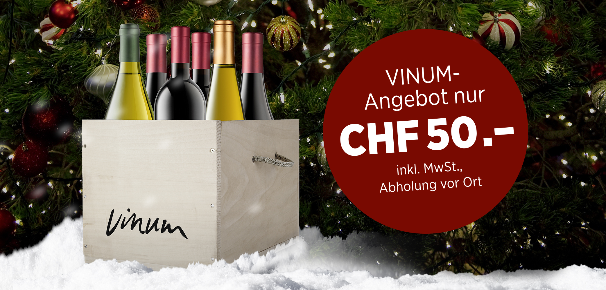 Holen Sie am 17. Dezember 2025, von 10.00 bis 12.00 Uhr Ihr Weinpaket am Empfang bei VINUM, an der Zürcherstrasse 39 ab.