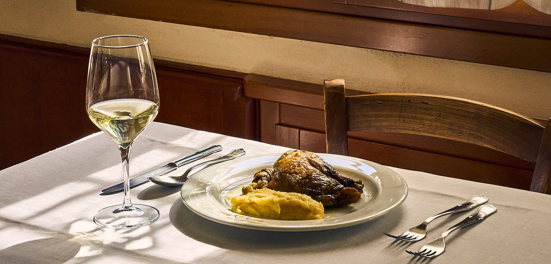 Die «Antica Trattoria Fattori» im Weiler Terrossa im Alpone-Tal verdient ihre Bezeichnung zu Recht: 1898 wurde hier erstmals aufgekocht. Heute führt Camillo Fattori das Zepter in der Küche und pflegt traditionelle Gerichte wie «Capretti allo Spiedo» (Kitzlein vom Spiess) oder ein «Coniglio al Soave e Funghi Porcini» (Kaninchen in Soave mit Steinpilzen). Camillo ist darüber hinaus ein Experte für Baccalà alla Vicentina und Mitglied einer Confraternità, einer Bruderschaft, von Restaurants, die das Originalrezept für den Stockfisch nach Vicentiner Art mit kleinen Verfeinerungen pflegen.