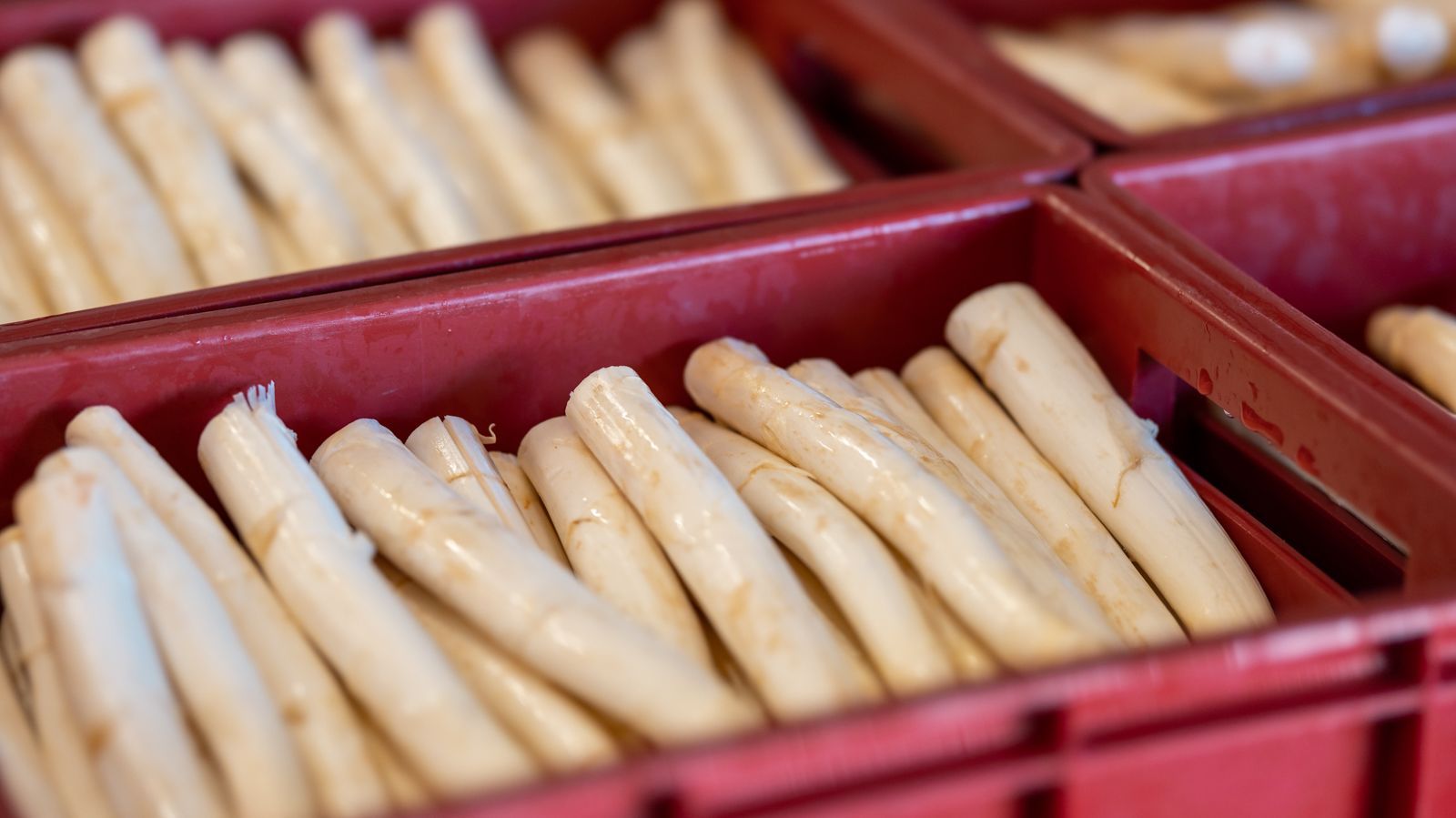 - Spargel der Länge nach halbieren.