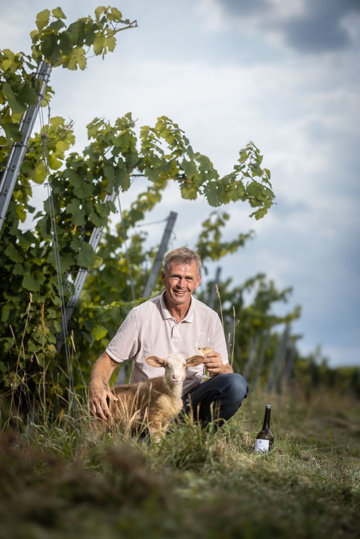 Die Kirchenglocken läuten im Hintergrund beim Interview mit Michael Schmitt. Das sei die Kilianskirche, keine 300 Meter Luftlinie von hier: «Das Läuten erinnert daran, dass es Zeit ist, Mittagessen aufzusetzen.» Im Fall des 57-jährigen Winzers bereitet Ehefrau Andrea, gelernte Hauswirtschaftsleiterin, gerade Käsespätzle in der Küche zu. Häufig gibt es bei den Schmitts ein Lammgericht, denn sie besitzen 25 Coburger Fuchsschafe, eine Schafsrasse mit rotbrauner Färbung. Nicht nur, dass die Fuchsschafe die Begrünung in Anlagen, wo Michael Schmitt die Reben höher erzieht, kurzhalten, «die Tiere strahlen eine unglaubliche Ruhe aus. Wenn ich runterkommen will, setze ich mich zu ihnen und beobachte sie». In solchen Momenten tankt der Geschäftsführer und Vorstandsvorsitzende der Weingärtner Markelsheim Energie für seinen Job.