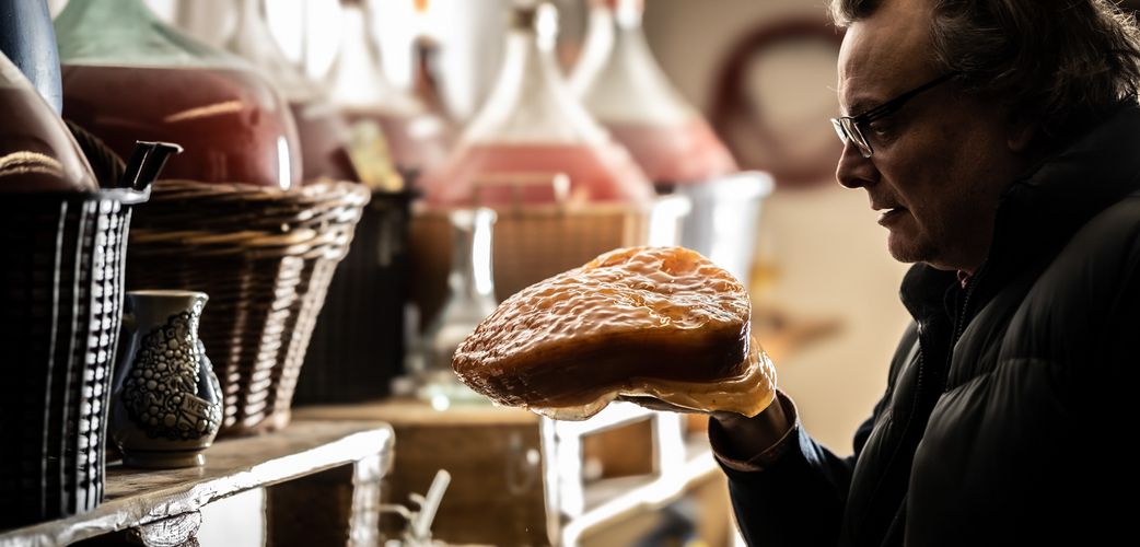 Als die Urgroßeltern von Marc Boehringer vor rund 120 Jahren geheiratet haben, wussten sie noch nicht, dass sie an diesem Tag die Zukunft ihres Urenkels beeinflussen würden. Am Hochzeitstag haben sie traditionell eine Essigkultur angesetzt. Die damals entstandene Kultur gibt es noch heute – sie wurde über Generationen geteilt. Um die gallertartige Masse aus Essigsäurebakterien zu sichten, muss man sich tief unter die Cannstatter Erde begeben. Hier reifen im optimalen Klima teilweise schon 25 Jahre lang besondere Aperitif-Essig-Kreationen in ganz unterschiedlichen und sehr raren Barrique-Fässern.