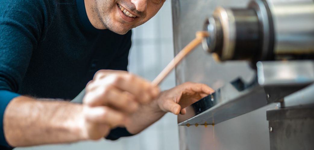 Wer schon mal Bucheckern gesammelt hat, weiß ganz genau: Da ist Geduld gefragt. Die Früchte der Rotbuche sind gerade mal 1,5 Zentimeter groß. Wer kommt ernsthaft auf die Idee, daraus Öl zu pressen? Stefan Kerner von der Erlenbacher Ölmühle! Er erzeugt diese Rarität unter den Speiseölen. Auch wenn der Aufwand riesig ist. Und die Rotbuche nur alle drei bis sieben Jahre Bucheckern abwirft, die zum Ölpressen geeignet sind. Von den «Buchele» braucht er rund 25'000, also um die sieben Kilogramm, um einen Liter Bucheckern-Öl zu erzeugen. Vor dem Pressen werden die Bucheckern sorgfältig gereinigt und getrocknet. Das Ergebnis ist eine echte «Limited Edition» und nicht nur wegen des dezent nussigen Geschmacks der absolute Renner bei Gourmets. Das wertvolle Bucheckern-Öl enthält zudem jede Menge einfach und mehrfach ungesättigte Fettsäuren.