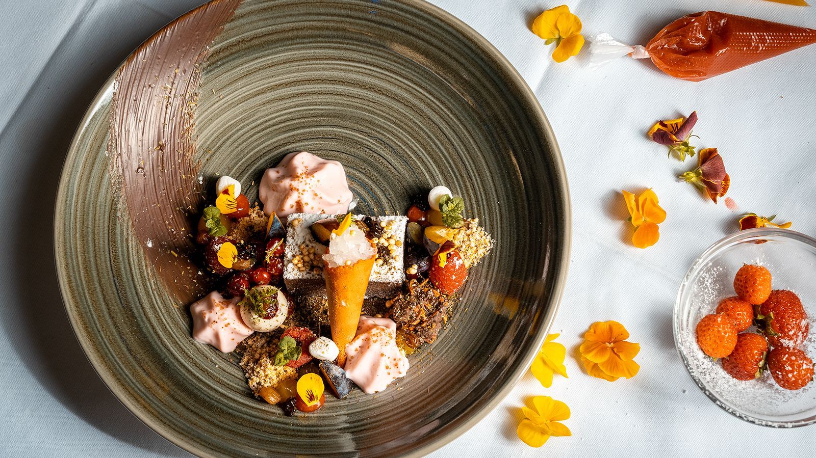 1 Prise Meersalz hinzufügen, mit gehackter Schokoladen-Minze, gemahlenem Kardamom, gemahlenem Zimt und Limettenzeste abschmecken