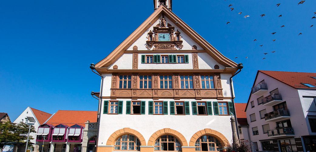 Unter strahlendem Himmel fühlt man sich auf dem Marktplatz von Vaihingen wie in der schwäbischen Toskana. Und die wild fotografierenden Tagestouristen fangen unermüdlich den «Vaihinger Dreiklang» mit ihren Smartphones ein. Das architektonische Ensemble wird von einem Stadtführer kommentiert: «Das Rathaus zu unserer Linken symbolisiert die bürgerliche Hoheit, rechts daneben stellt die evangelische Stadtkirche die klerikale Hoheit dar und dort oben sehen wir in Form von Schloss Kaltenstein die weltliche Hoheit.»