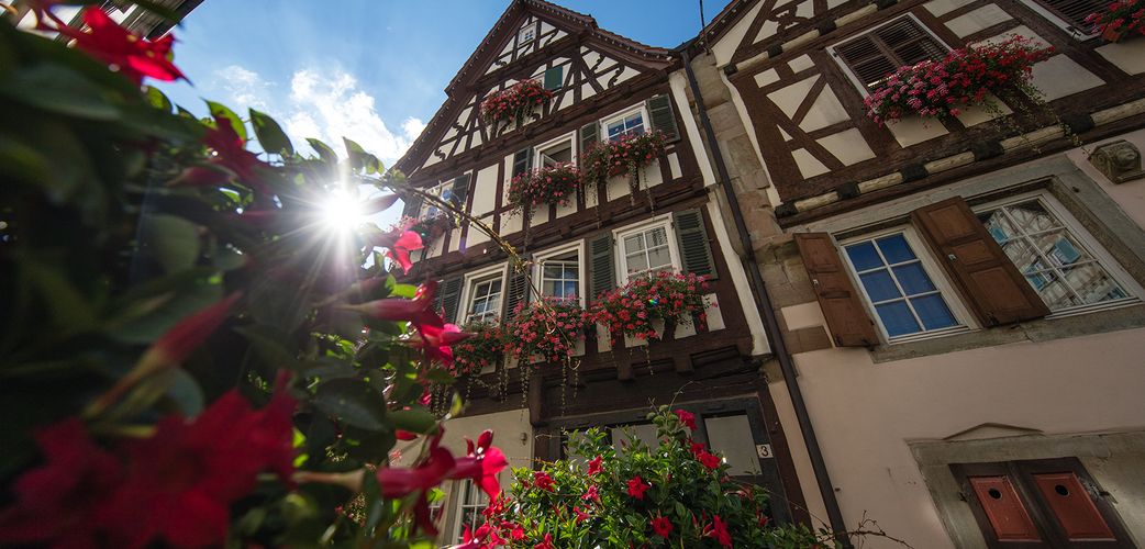 Sätze wie «Ohne die bürgerliche Freiheit können wir nicht atmen» haben heutzutage brennende Aktualität. Der Zitat-Urheber Theodor Heuss, erster deutscher Bundespräsident und begeisterter Weinfreund, kam in Brackenheim zur Welt. Bevor wir ins ihm gewidmete Museum seiner Geburtsstadt gehen, stärken wir uns im Gasthaus «Hotel Adler». Regionalen Charme versprüht die familiengeführte Traditionsgaststube, wärmende Sonnenstrahlen ziehen uns in den hübschen Innenhof, wo wir zarten Zwiebelrostbraten mit Spätzle vom Brett genießen. Dazu mundet eine Lemberger Spätlese des Weinkonvent Dürrenzimmern: Geschmeidiges Tannin und dunkle Beerenfrucht konturieren das saftige Schmorfleisch. Auch das hausgemachte Rosmarineis mit Aprikosenragout ist ein Genuss. Doch die Karten fürs Theodor-Heuss-Museum wollen eingelöst werden. Im ehemaligen Obertorhaus kommt man dem liberalen Politiker näher – als Staatsmann, Literat und Journalist mittels Bild- und Tondokumenten, Filmen und ausgewählten Exponaten.