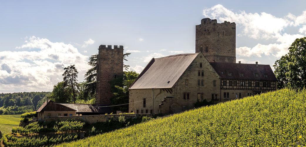 Als Startpunkt unserer «Weinsüden Weinorte»-Tour eignet sich der Marktplatz im mittelalterlichen Stadtzentrum bestens. Geprägt von bilderbuchhaften Fachwerkbauten, teils aus dem 12. Jahrhundert, lockt Vaihingen von hier zur reizvollen Genuss-Kultur-Reise. Rahmende Kulisse des Weinortes bilden Reste der antiken Stadtmauer und der 1492 erbaute Pulverturm. Wir kehren in einer Weinstube ein. Zwischen Lemberger und Trollinger schwankend, fällt die Wahl auf einen Lemberger, der sich wenig später mit seinem Pfefferl königlich zur Tellersülze vom Hochlandrind macht. Vaihingen an der Enz trägt seit 1987 offiziell den Titel «Internationale Stadt der Rebe und des Weins». So liegt es nahe, dass der Ort über einen Weinlehrpfad verfügt: Über drei Kilometer wandern wir durch die idyllische Landschaft des Klosterbergs. Hinweistafeln erläutern die unterschiedlichen Facetten des Weinbaus und auch, welche Eidechsen und Salamander sich in den Terrassenmauern wohlfühlen. Und zwischendurch kann man den Blick von bestimmten Punkten bis zur Schwäbischen Alb, den Löwensteiner Bergen und in das mittlere Neckartal schweifen lassen. Nördlich von diesem Rundweg liegt der nicht minder attraktive Rotweinlehrpfad, den wir morgen abwandern werden.