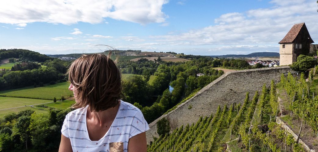 Aufgeladen vom demokratischen Geist des berühmtesten Städtesohns, geht es weiter zum kombinierten Natur- und Weinlehrpfad im Zweifelberg. Die Brackenheimer Lage, deren Bodenformationen Keuper und Buntsandstein sich an Felswänden erfassen lassen, gibt immer wieder den Weitblick über das Heilbronner Land frei. 160 Schautafeln geben Einblick in Rebsorten, Weinbau oder die heimische Vogelwelt. Wer Glück hat, erheischt auf dem zwei Kilometer langen Themenweg eine vorbeihuschende Smaragd- oder Bergeidechse. Garantiert ist auf jeden Fall eine vinologische Kostprobe an der Alten Weinberghütte, wo «am Wochäend bwirted isch», wie uns ein vorbeiwandernder Schwabe mitteilt. Den Wein-to-go am Ausschank mit Aussichtskanzel – ein Lemberger der Lage Zweifelberg – lasse mir uns freilich ned entgeha.