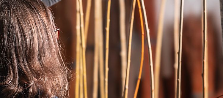 Claudia Lauxmann steht neben einem riesigen Schwingkorb aus Weidengeflecht. Der hat seine besten Zeiten definitiv schon hinter sich. Es gibt jede Menge Moos. Auch die Weiden sind schon ziemlich porös und so gar nicht mehr taufrisch. Das stabile Gestell ist jedoch einwandfrei. Und schon jetzt leuchten die Augen der begeisterten Korbflechterin, die dem betagten Hängesessel neues Leben einhauchen wird. Man merkt förmlich, dass sie schon exakt vor Augen hat, wie das gute Stück mal aussehen wird. Wie sie dafür die gewässerte Weide ganz exakt führen wird, so dass ein akkurat geflochtenes Ergebnis entsteht. Und genau das macht ihre Flechtkunst aus.