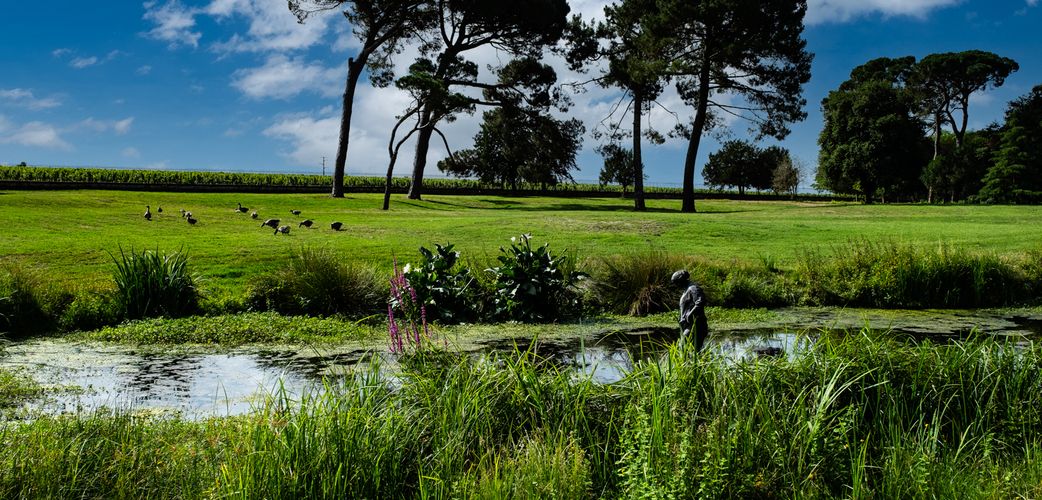 Es gab eine Zeit, da führten wir Fachbesucher direkt in den Verkostungsraum, sassen stundenlang mit dem Glas in der Hand und diskutierten über Terroir, Typizität und Jahrgang. Dagegen ist an sich nichts einzuwenden. Doch im Eifer des Gefechts geht dann schon mal vergessen, was Giscours auch ist: ein einmaliges, ausgedehntes Biotop aus Rebparzellen, Wäldern, Tieren, bewohnt von Familien, die hier arbeiten. Heute fahren wir Besucher erst einmal im Elektroauto durch die einmaligen Reblagen (100 Hektar AOC Margaux, 65 Hektar AOC Haut-Médoc), streifen durch den 1870 vom bekannten Gartenbauer Eugène Bühler angelegten Park mit seinen mächtigen Fichten und Eichen, seinem Teich mit den Enten, den blühenden Rhododendren, den Schafherden und der Ferme Suzanne (Bauernhof) mit ihren Pferden oder stibitzen Erdbeeren in unserem grossen, bunten Gemüsegarten.