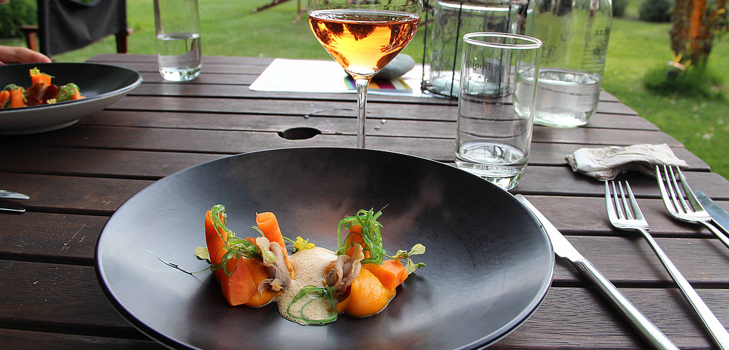 Auf dem Weingut angekommen betreten wir zuerst den Garten: viele Blumen, ein Bienenkasten, große, alte Bäume und ein kleiner Hof mit Tischen und Stühlen sowie Hängematten und große Sitzsäcke auf der Wiese. Uns empfängt ein junger Weinstudent, der uns über das Weingut informiert und die Weine probieren lässt. Sie schmecken nach Sommerwiese: Blumen, Rosen, feinen Kräutern und Honig. Finessereiche, mineralische Weine, die die Natur fast eins zu eins wiederspiegeln. Größtenteils Chardonnay, sowie die Aromasorten Gewürztraminer, Grauburgunder und Viognier werden an dem trockenen, sonnigen Standort angebaut. Ein kleiner Imbiss aus lokalen Leckereien macht den Nachmittag perfekt. Wir genießen die entspannte Stimmung, unterhalten uns mit den lustigen Neuseeländern am Nachbartisch und freuen uns über die fantastischen Weine.