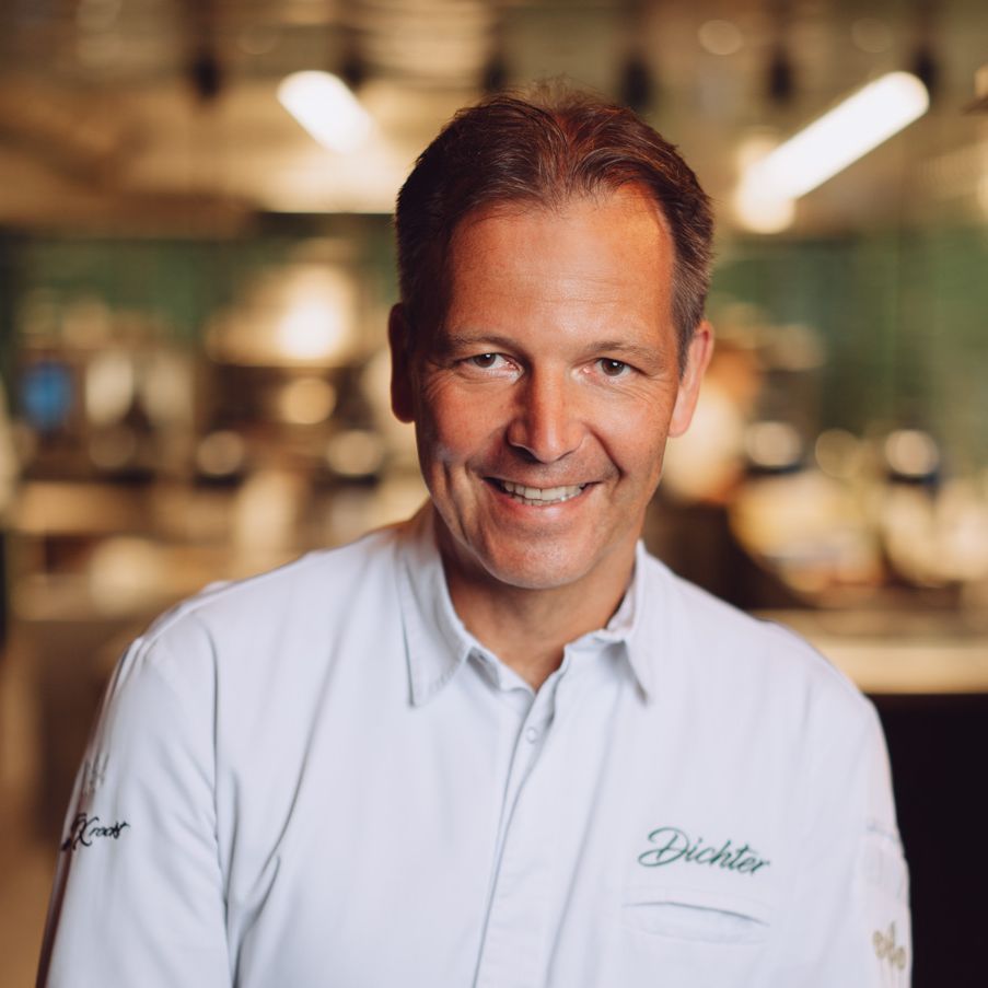 Die Jakobsmuschel wird kurz in Butter gebraten und mit marinierten Tatarwürfeln ergänzt. Zarte Trüffelmayonnaise, goldbraune Blumenkohlröschen, steif geschlagenes Eiweiss und eine Blumenkohl-Beurre-Blanc komplettieren das Gericht. Die drei Texturen bilden einen ruhigen, cremigen Gegenpol: Die natürliche Süsse und die leichten Röstaromen verbinden sich mit der Dichte und Komplexität der Laurent-Perrier Grand Siècle Itération N0 26. Die Sauce umspielt die feine Perlage, der Champagner greift die Cremigkeit auf, hebt das Jod der Muschel und betont ihre Meeresnote. Die Spinatrolle mit Garnelenflan bringt grüne Aromatik, Erdigkeit und Umami ins Spiel, während Sakefond und Trüffel luxuriöse Akzente setzen und ein präzises Zusammenspiel aus Textur, Balance und Tiefe bieten.