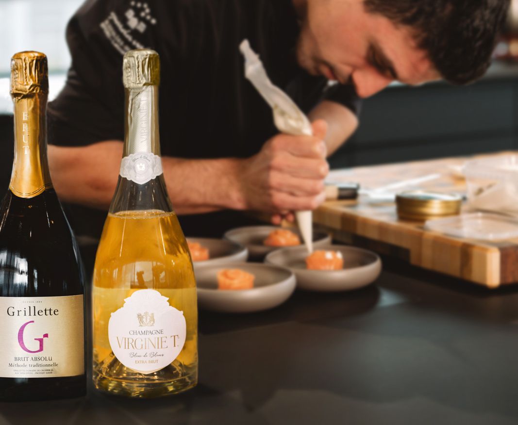 Funkelt mit feinen Perlen in hellem Strohgelb im Glas. Die Nase duftet nach feinen weissen Blüten, gelbem Kernobst, ein Anflug von Karamell und Röstnoten. Der Gaumen ist komplex und frisch, wiederum mit gelber Frucht und Röstaromen. Klingt mit langem Nachhall aus. Nimmt wunderbar die Cremigkeit des geräucherten Lachses auf und balanciert die feine Salznote des Kaviars aus.
