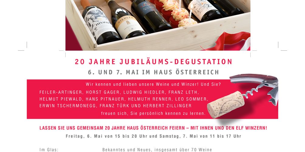 Am Wochenende vom 6. und 7. Mai feiern wir mit Ihnen und elf persönlich anwesenden Winzern unseren 20. Geburtstag. Sie dürfen sich auf ein überaus spannendes Angebot an Weinen bekannter Produzenten wie auch auf eine Vielzahl neuer Weine von Winzern freuen, die zum ersten Mal bei uns zu Gast sein werden.