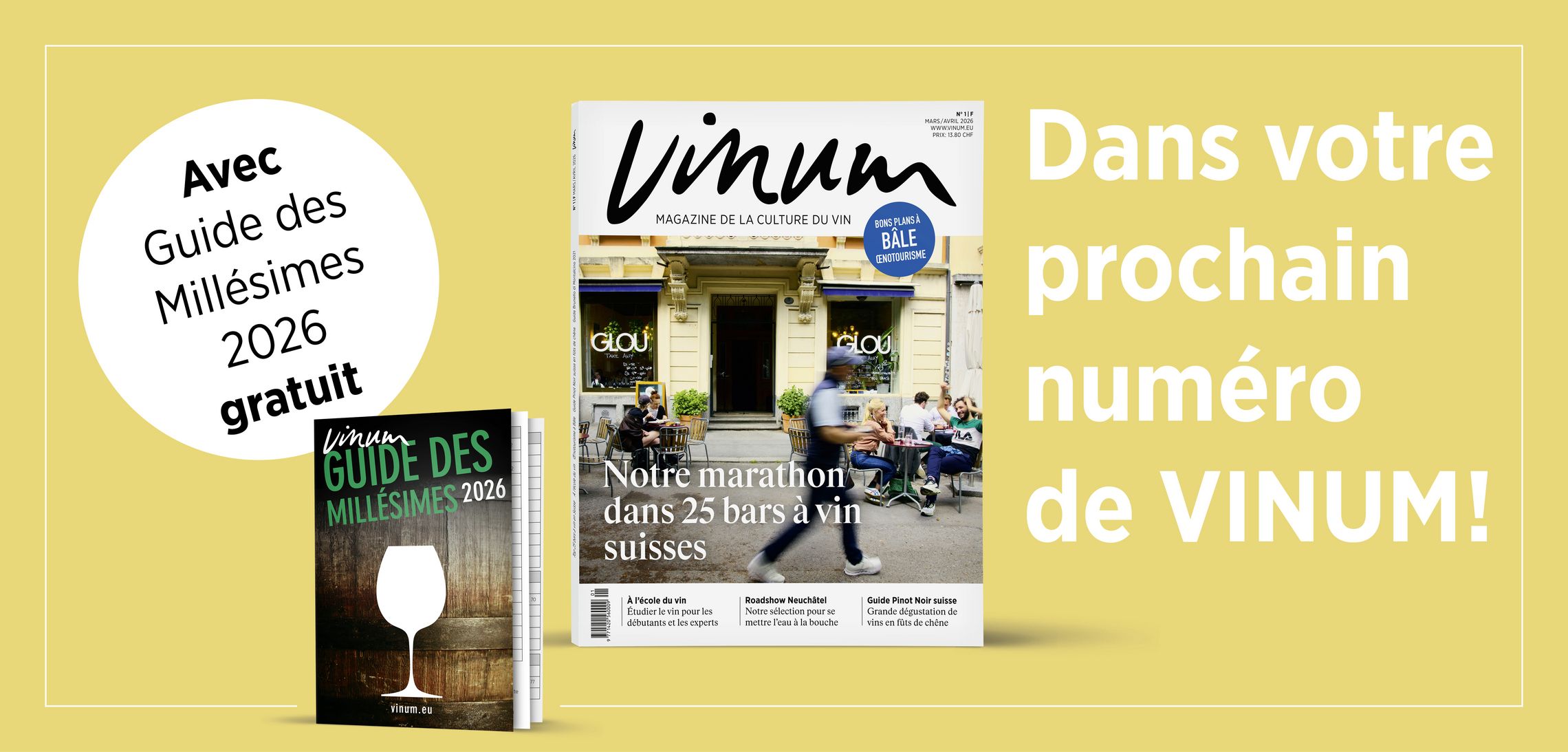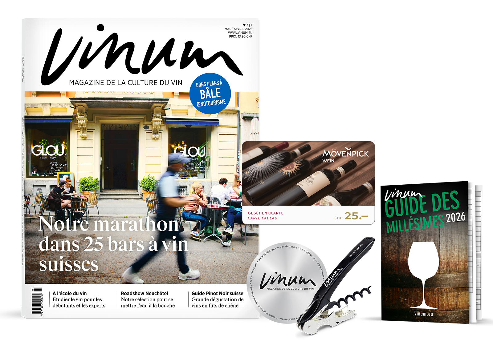 Recevez gratuitement un bon de 25 francs de Mövenpick Vins, tire-bouchon + Dropstop VINUM et un Guide des Millésimes 2026 en cadeau de bienvenue avec votre abonnement annuel à VINUM.