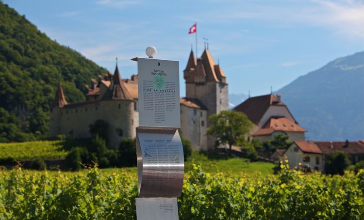 Sept panneaux didactiques, illustrés par le dessinateur Buche, et une vingtaine de flèches et marquages au sol jalonnent une boucle de 4,5 km, accessible en fauteuil roulant et avec des poussettes. Plusieurs thèmes ont été envisagés pour garnir les totems pédagogiques trilingues, mais c’est finalement le travail du vigneron qui a été retenu. «Nous avions à cœur de revaloriser un métier souvent dénigré», a commenté Salomé Molliex. Enseignante et épouse du vigneron Thierry Molliex à Féchy, elle a eu l’idée de la balade et a porté le projet débuté il y a bientôt cinq ans.