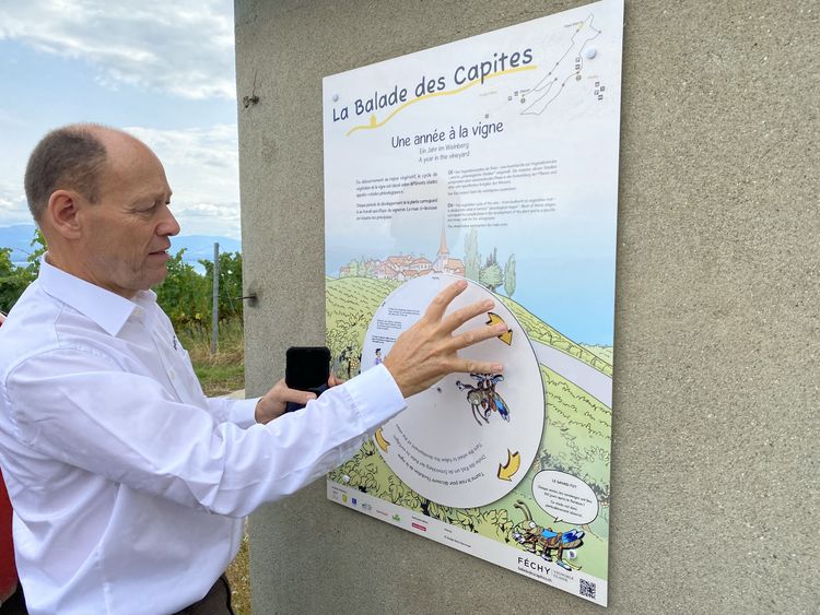 La refonte et l’inauguration du sentier des vignes s’inscrivent dans la nouvelle stratégie commerciale des Vins du Chablais, dévoilée le 4 avril 2023. Ce jour-là, Alain Emery, vigneron à Aigle et président de la CIVCV, présentait le sentier des vignes comme «une véritable colonne vertébrale entre les appellations».